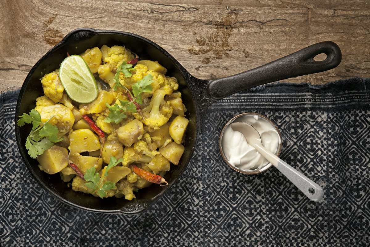 Verifique la sazón, decore con cilantro y sirva. Para una comida estilo hindú, acompañe el Aloo Gobi con yogur sin sabor, arroz basmati y lentejas.