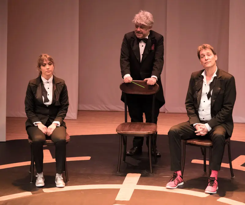 En esta comedia, que estará en temporada en el Teatro Nacional Fanny Mikey hasta el 28 de mayo, el elenco reemplaza la utilería acudiendo a sus capacidades interpretativas, evoca por momentos el trabajo de los mimos y hace que el público ni siquiera tenga que imaginarse el tiempo ni el espacio porque la escenografía (que estuvo a cargo de Tatiana Aricapa) es un concepto que resalta la intención de los personajes.