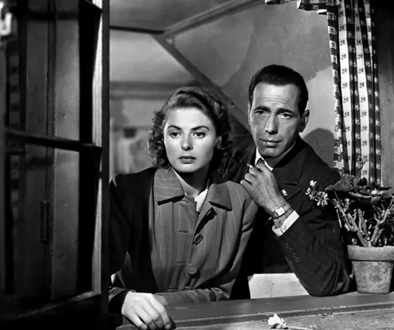 El romance de Rick e Ilsa es uno de los más emblemáticos del cine en parte por la historia y en parte porque los dos actores hicieron cosas extraordinarias con sus personajes. Nadie mejor que Humphrey Bogart para hacer de Rick, el cínico, desilusionado, estoico y siempre cool dueño del Café Américain. Como dice el historiador de cine Rudy Behlmer, Rick no es un héroe pero tampoco es un mal tipo. Es un protagonista práctico que hace lo que sea necesario para llevarse bien con las autoridades y no arriesga su vida por nadie sino él mismo.