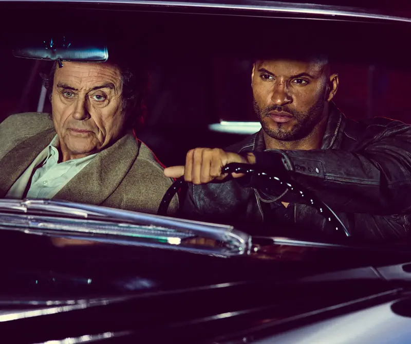 En la foto principal: Ian McShane y Ricky Whittle como Mr. Wednesday y Shadow Moon, los personajes principales