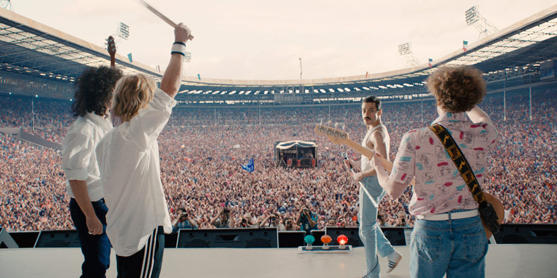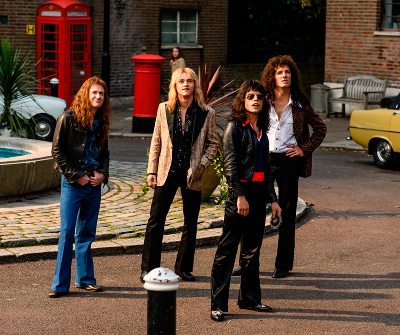 Adoro a esos chicos [Rami, Ben y Joe] y hemos sido inseparables desde que terminamos de filmar. Ten en cuenta que vivimos en extremos opuestos del Atlántico, pero nos hemos reunido más o menos cada mes. Hay un fuerte “bromance” entre nosotros [risas]. Creo que nos dimos cuenta de que uno de los elementos más importantes en la película era crear esa camaradería y esa compenetración, porque resultaba fundamental para ellos. Eran una familia, se referían a Queen como “la nave nodriza” y cuando tenían discusiones o conflictos, siempre volvían a estar juntos. Esa es una de las cosas que los convirtió en una banda tan duradera y exitosa (…) Comenzamos la filmación con Live Aid [el enorme concierto benéfico para recaudar fondos para acabar con la hambruna en Etiopía en julio de 1985], lo cual fue una decisión osada, pero me pareció brillante, porque entrar de lleno a la parte más difícil te motiva y te obliga a estar unidos.
