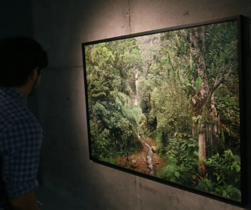 ¿El registro del paisaje es el eje de la exposición? La fotografía hace de soporte, incluso en los videos, pues representa la posibilidad de reunir elementos. Pero además de eso, conecta con otras claves desperdigadas: referencias a otros recolectores de entornos (Humboldt, por ejemplo), álbumes, documentos de la Comisión Corográfica, atlas de antiguos recorridos por Colombia, estampillas, calendarios, cromos y piedras, testigos silenciosos de un paisaje que nunca es el mismo.