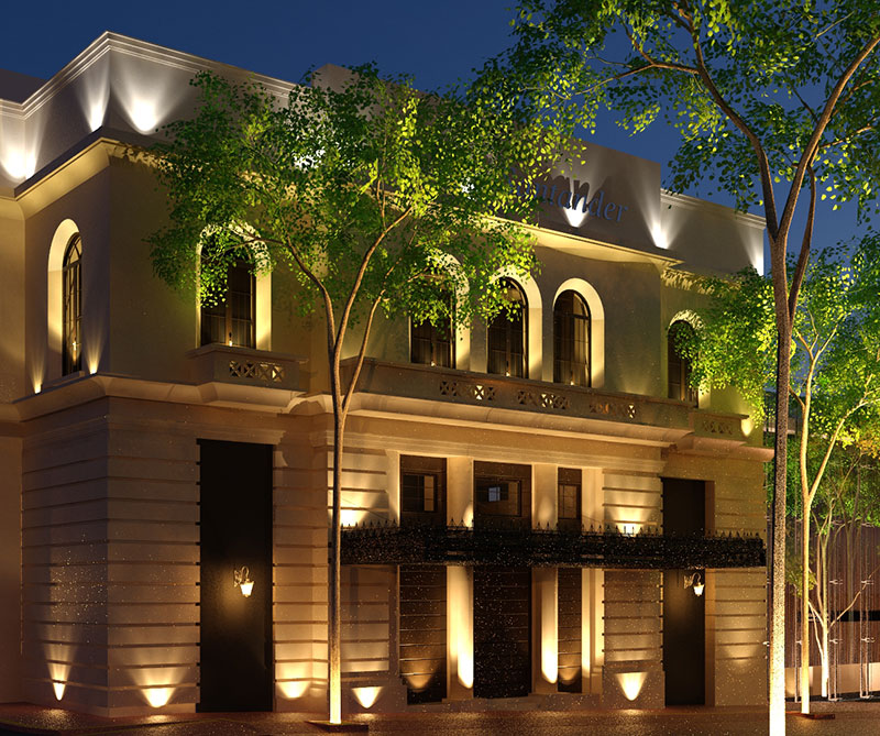 Entre las obras se encuentra una escultura que cuelga en el patio del hotel, una pieza hecha con luces de neón y espejos que se proyecta en la fachada del hotel y una serie de muebles ubicados en el vestíbulo.