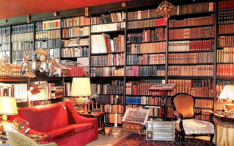 Su inmenso santuario está dedicado a las humanidades en general. Allí está toda la buena literatura que se debe leer y releer», pero adicionalmente en ediciones inconcebibles, desde una colección bilingüe de los clásicos griegos y latinos hasta la primera edición de En busca del tiempo perdido, de Marcel Proust. Todo bien ordenado y catalogado, serpenteando en estanterías por toda la casa, incluidas las habitaciones de sus hijos.