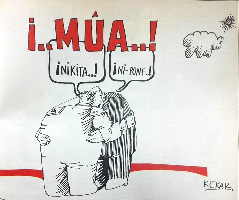 No fue un placer, por ejemplo, descubrir que los líderes socialistas de Europa Central se besan en la boca. Admiro a los cosmonautas, sí; pero fue poco emocionante descubrir aquel viejo recorte de revista que muestra a Nikita Krushev besándose ante miles de rusos con un hombre llegado de la Luna.