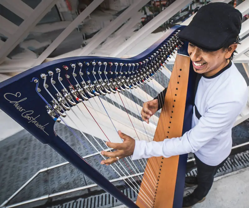 Cuando se cansó de hacer tiempo en el escenario para afinar entre canciones, cuando quiso tocar con orquestas sinfónicas y se dio cuenta de que el instrumento le quedaba chico, se unió con la compañía francesa Les Harpes Camac para diseñar su propia arpa. “Siempre fui muy inquieto con esas cosas. Desde que salí de Colombia iba donde el luthier y le pedía modificaciones para mi arpa: le quitas aquí, le pones allá”.