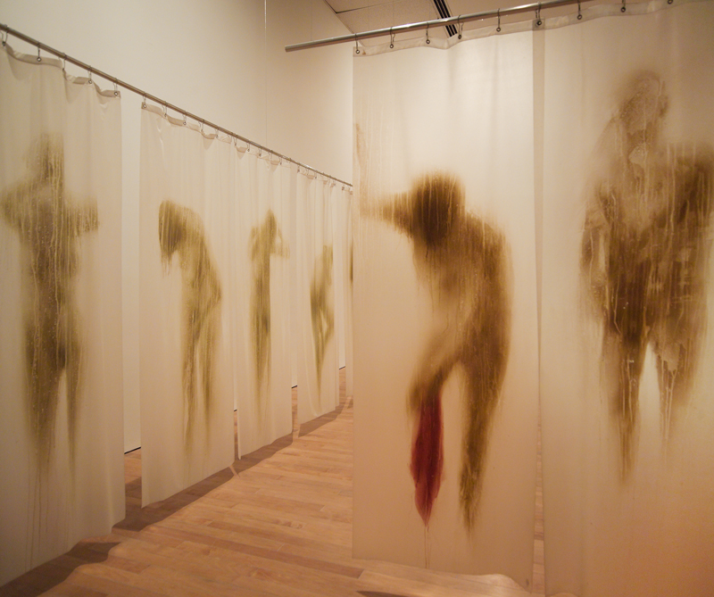 En Horizonte imprime en carbón cuatro cuadros del mismo video del Método Ludovico. La imagen es lavada, traslúcida y casi invisible.
