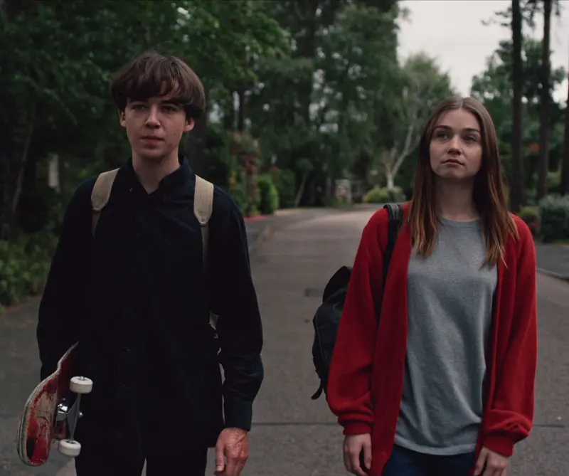 Alyssa (Jessica Barden, Penny Dreadful), mientras tanto, siente tanto que debe tomarse el tiempo para “sentir los colores” y sentirse, por un instante, libre. Suspira por James sin saber que es la elegida, y lidia con una vida familiar, como menos, disfuncional. Ambos emprenden un camino tan oscuro que al televidente se le olvida, por ratos, que está viendo una comedia.