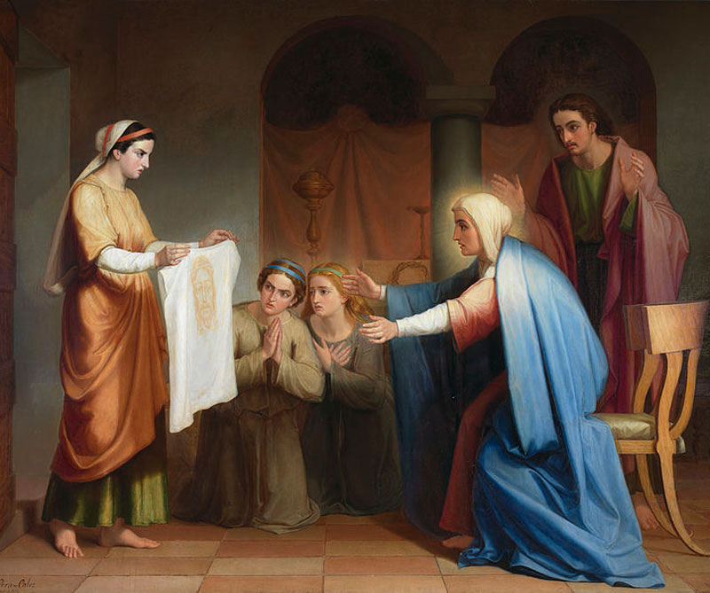 La Verónica mostrando la Santa Faz a la Virgen y San Juan (1864). Autor: Juan Antonio Vera Calvo. [/diners1]