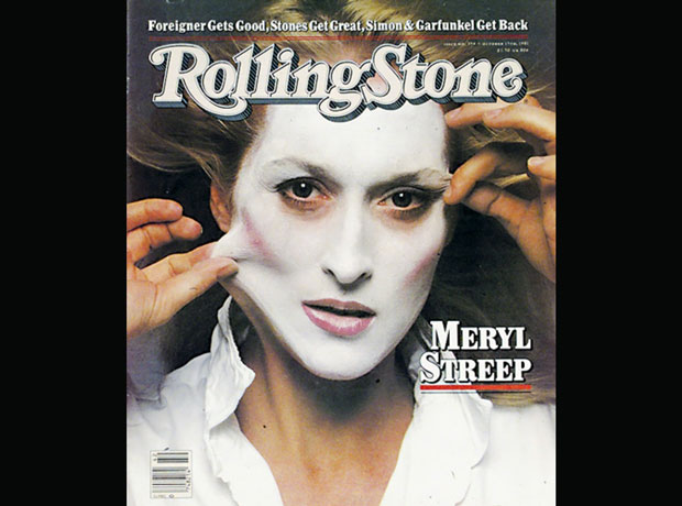Leibovitz, quien trabajó durante diez años para la revista, también fotografió la primera portada de Mick Jagger y Keith Richards en 1975. Y en 1981, le regaló al público una imagen completamente diferente de Meryl Streep, con la cara pintada de mimo.