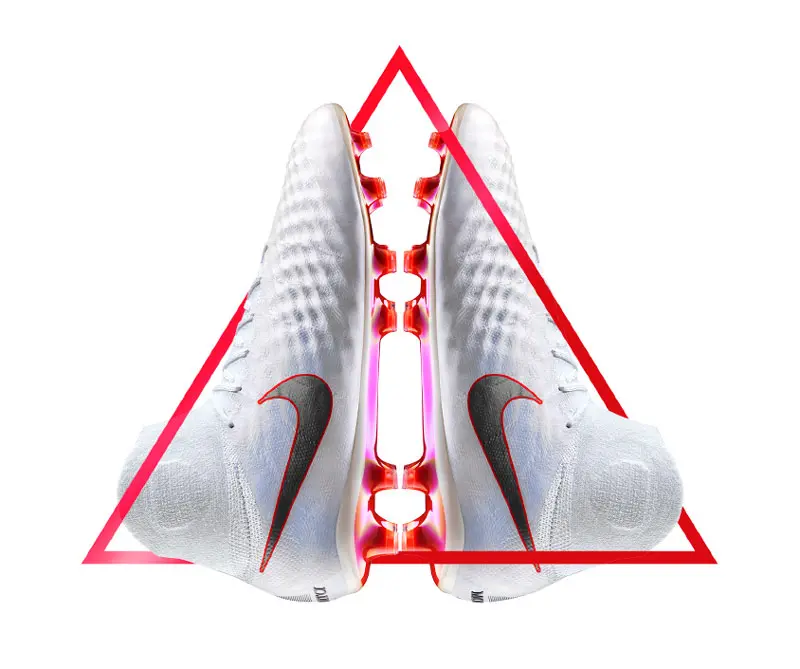 La parte superior de estos guayos presenta una piel nacarada mate, y swooshes (el logo de Nike) grises y metálicos. Cada bota incorpora en el talón el estampado de un triángulo formado por 32 líneas que representan a la totalidad de los equipos que participan en el Mundial de Rusia 2018.