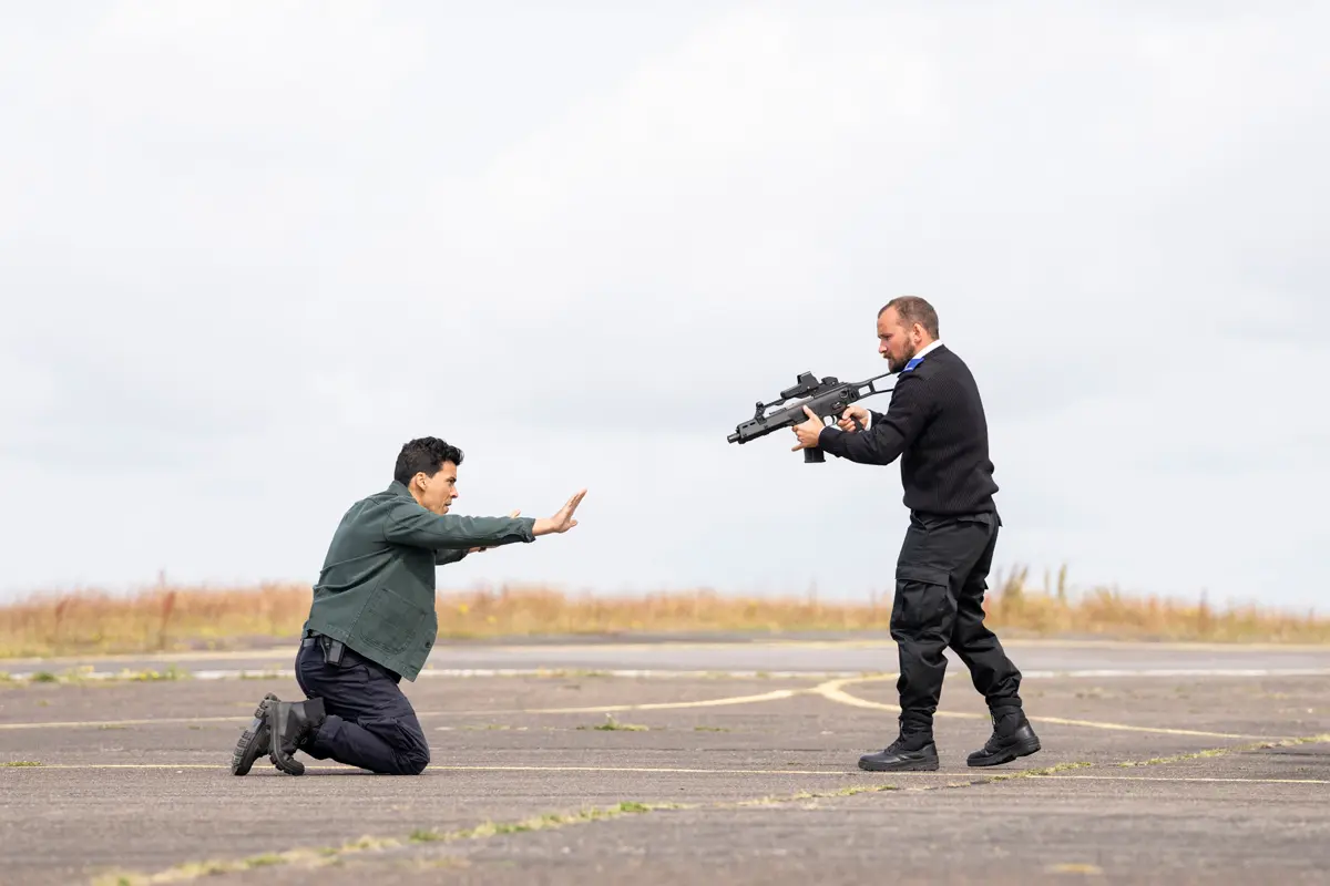 El segundo episodio es diferente, es una especie de película de acción tensa con un francotirador suelto en París. En cuanto al cuarto episodio, éste estuvo diseñado para que pareciera un western en un aeródromo remoto. Eso es lo que se mantuvo durante todo el proceso. Eso es lo que tenía en mi cabeza para asegurarme de que cada capítulo entregara cierta clase personajes y mucha acción, pero también tuviera una su selo distintivo.