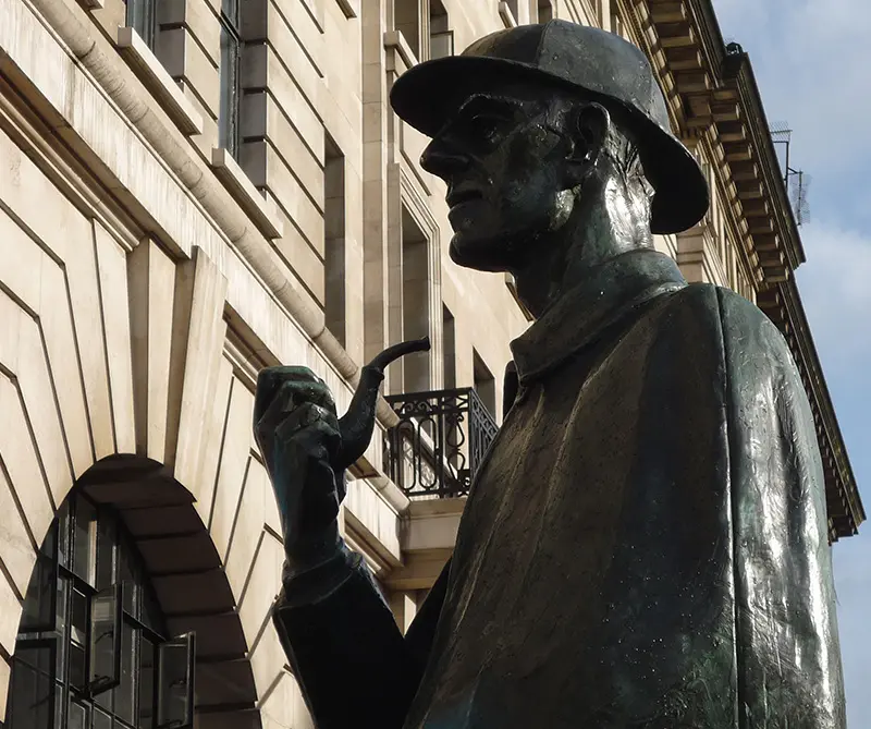 Son muchos los monjes holmistas que se cultivan en Londres. En la propia calle Baker funciona el Hotel Sherlock Holmes; no muy lejos hay un restaurante italiano que lleva el nombre del villano de la serie, Moriarty; existe el bar Doctor Watson; la estación de metro de la calle Baker tiene adornadas las paredes con el perfil del detective; y a una cuadra de la plaza Trafalgar despacha el “Pub y Restaurante de Sherlock Holmes”, que es una especie de Disneylandia de la Inglaterra victoriana que fue escenario de sus aventuras.