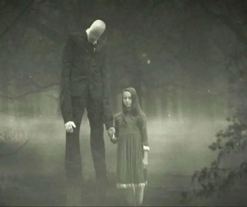 Allí, el estadounidense Eric Knudsen, identificado por el apodo de Victor Surge, publicó una fotografía modificada de unos niños en el bosque, quienes estaban custodiados por un hombre raquítico, alto y sin rostro.