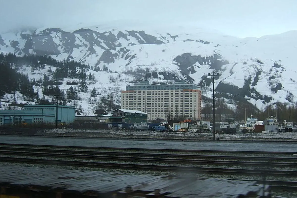 Esta extraña situación ocurre en Whittier, un pueblo de Alaska, en donde en un complejo de edificios con tres torres de 14 pisos cada una vive la gran mayoría de la población de este pueblo.