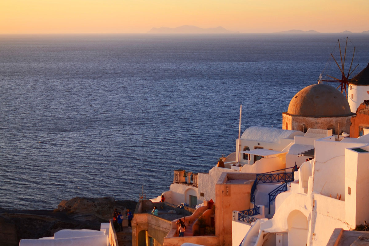 La isla griega de Santorini es uno de los lugares más populares del Mediterráneo. Muchas parejas escogen este destino por su tranquilidad y sus preciosas fachadas blancas con cúpulas azules. En el día usted podrá recorrer la isla y visitar algunas ruinas, como el yacimiento arqueológico de Akrotiri, uno de los más importantes de la zona, y donde se encuentra una ciudad antigua subterránea, de la civilización minoica, que quedó enterrada luego de la erupción del volcán Santorini.