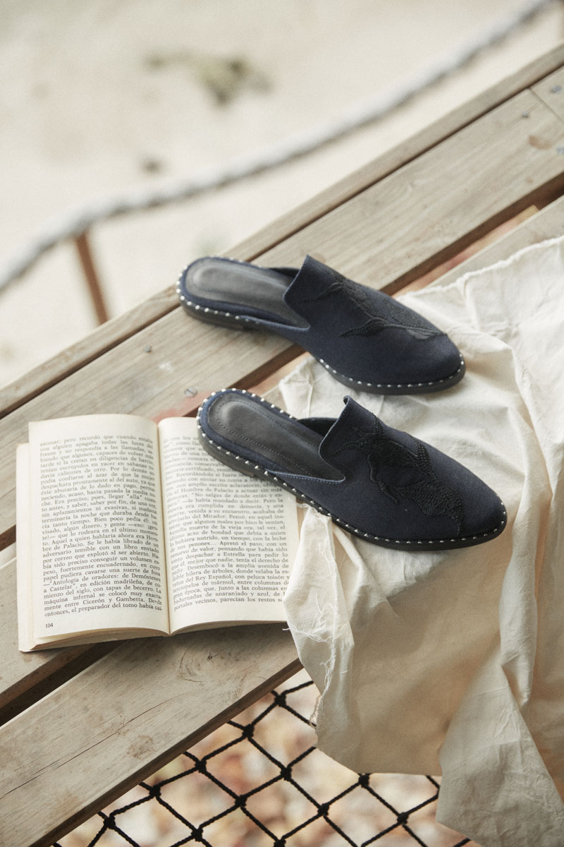Sueco bordado con taches.