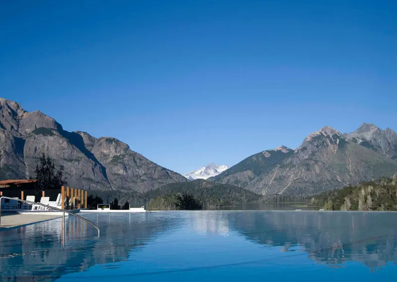 La piscina del hotel Llao Llao, en Bariloche, parece fusionarse con el lago Moreno. Foto: Cortesía Hotel Llao Llao.