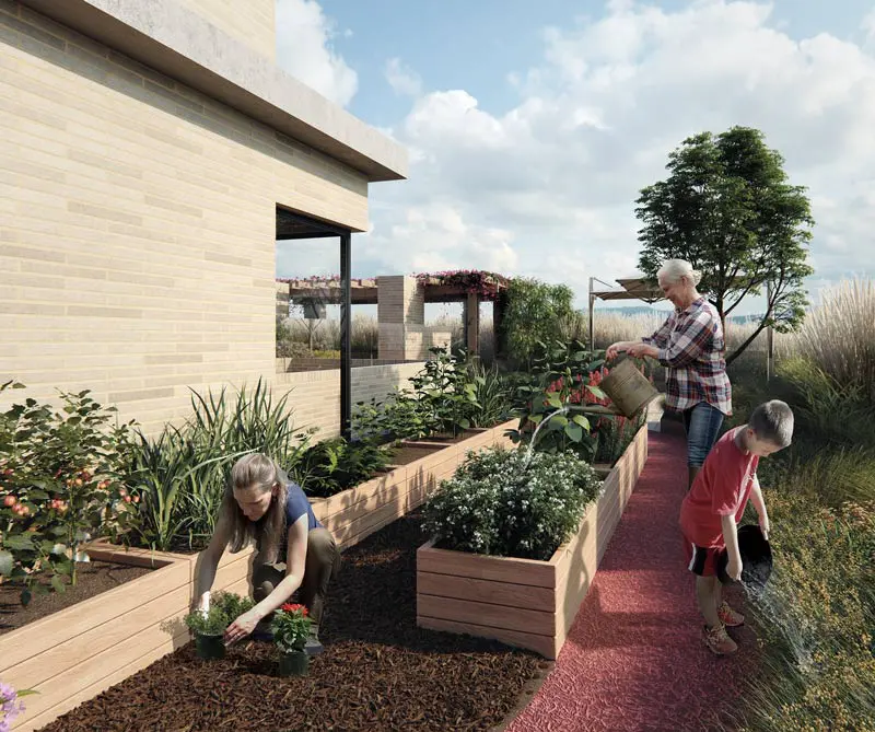 Esta experiencia se percibe desde la entrada del proyecto, donde se encuentra una pared vertical de frutos silvestres. Luego, ofrece un área aproximada de 579 m2 de natural roof garden, distribuida en soleras, el camino de la huerta, las áreas de barbecue y teppanyaki, integradas por una pérgola natural; el área de yoga y meditación, y los juegos infantiles. Para hacer aún más agradable la experiencia, Promobily ofrece, además, otros privilegios, como SportBar, turco y TRX Gym.