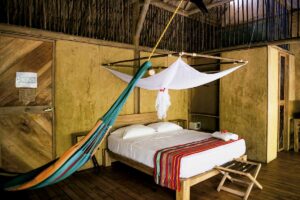 El lujo, para los dueños, es sinónimo de conexión con el entorno, por más que el diseño bioclimático de sus instalaciones tenga un buen concepto. No hay agua caliente o aire acondicionado. Los techos son de palma y las áreas sociales brillan por las hamacas y las flores, sin contar con el paisaje del mar y del manglar, llenos de vida. “Estamos en un lugar hermoso, pero no es tan evidente para descubrir ese manglar y el bosque”, aclara.