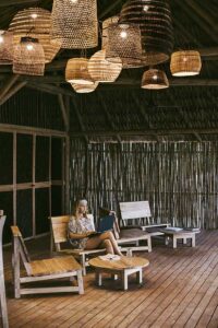Si no consideramos la emergencia de la pandemia, los que llegan son extranjeros y familias cansadas de la ciudad. Algún nómada que siempre está en movimiento y que quiere una estadía larga sin turismo de masas. Ellos prefieren estar en contacto con los dos ecosistemas que ofrece el hotel. O sus dos aguas: el mar, con espacios para el descanso y muchas hamacas, y el manglar, que ofrece otra vegetación y fauna, muy abundante por el calor del trópico y especial para las clases de yoga. En ambas hay espacio para el coworking, la meditación y el yoga. “La idea era hacer un negocio social, sostenible y que funcione”.