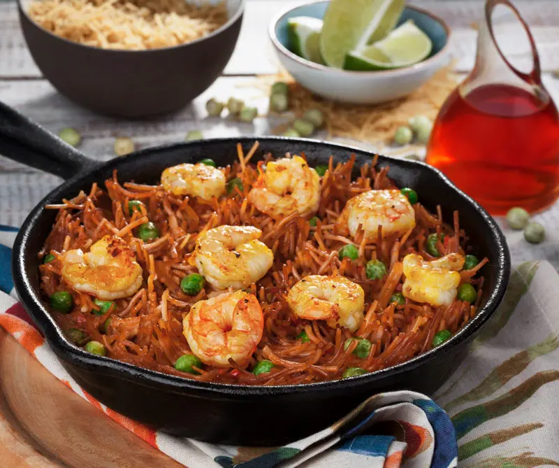 FIDEOS EXPRESS CON LECHE DE COCO Y CAMARONES