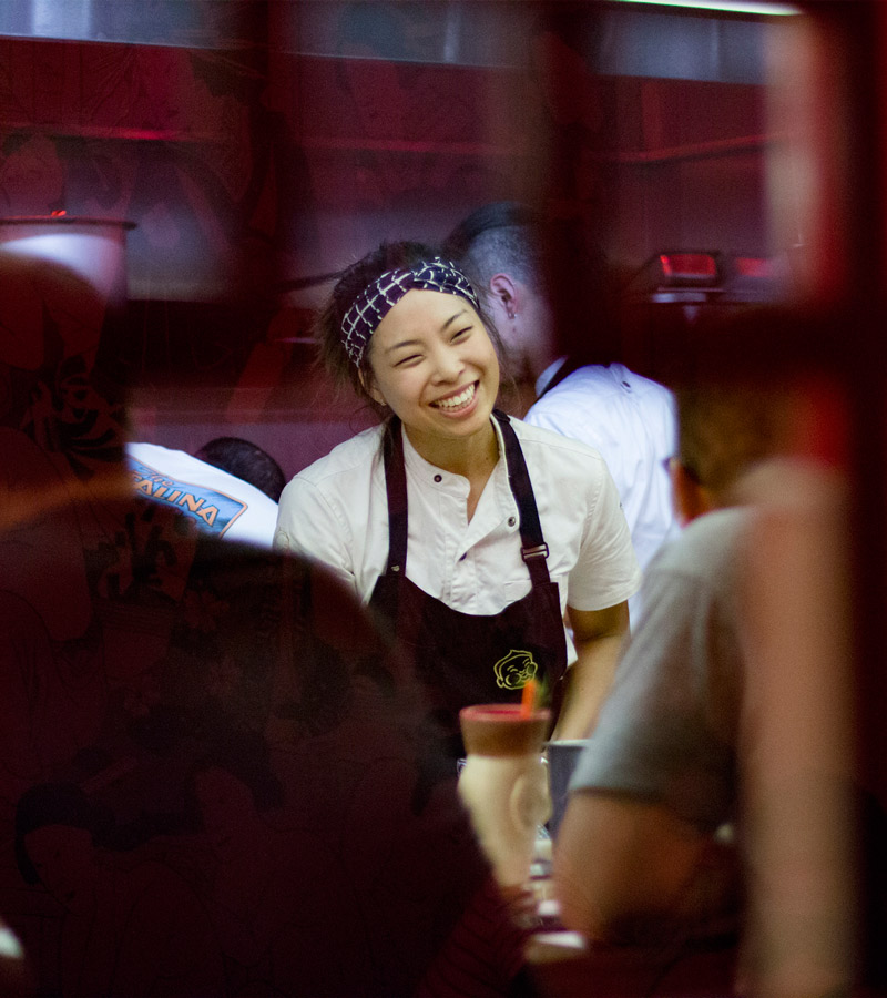 “Siempre nos ha gustado hacer cocina a la vista y aquí mezclamos las técnicas de la comida asiática con productos locales”, explica Sitz, mientras trabaja junto a ocho cocineros que atienden a más de 120 personas cada noche.