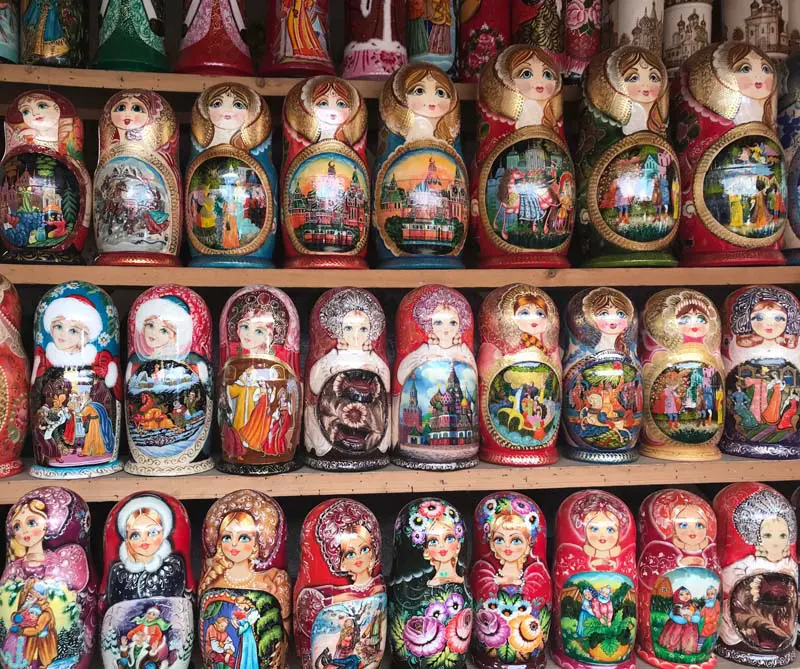 Antes de entrar hay un camino lleno de vendedores ambulantes a lado y lado y que sirven de abreboca a lo que se encuentra en el interior. Por un lado, lo típico: matrioskas, cajas de música y todo tipo de artesanías típicas rusas, pero también antigüedades y objetos que recuerdan la época de la Unión Soviética.