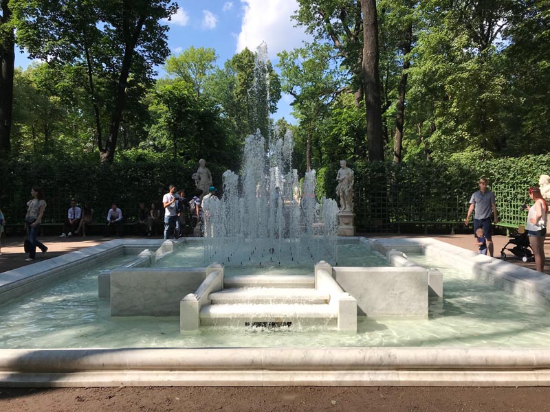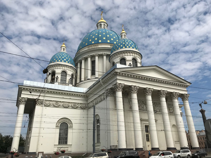 Todo el lugar, principalmente en el centro histórico y también a las afueras, es un museo con palacios, plazas, puentes, monumentos, gigantescas catedrales de cúpulas doradas, jardines diseñados simétricamente y adornados con fuentes y esculturas. Grandes avenidas circulan alrededor del Neva, añadiéndole a la vista una sensación de constante movimiento.