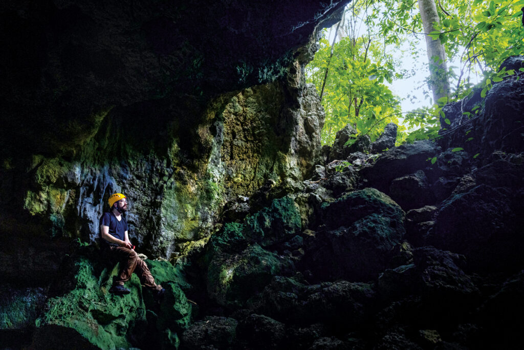 El clima es distinto, y hay unas arañas que podrían ser fácilmente el peor terror de un aracnofóbico, al igual que unos cuantos murciélagos que se sorprenden al vernos. La roca se rompe y enmarca un bosque verde por el que se filtra una luz fresca. Afuera llueve; adentro gotea.