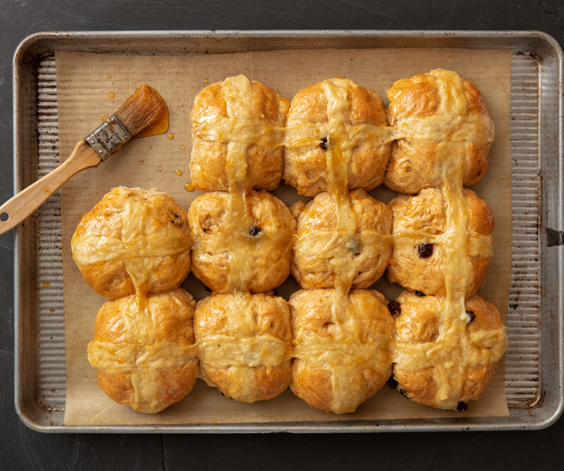 Los sajones paganos preparaban pan con cruces para honrar a Eostre, su diosa de la primavera y la fertilidad, de ahí el origen de la palabra inglesa pascua (Easter). Se dice que las cuatro secciones simbolizan las partes de la Luna o las estaciones. Con el tiempo, estos panes se transformaron en los panecillos de Pascua, que los británicos conocen como hot cross buns, y la cruz ahora se asocia con la crucifixión. La mejor manera de disfrutarlos es untarlos con mantequilla cuando están recién salidos del horno y servirlos con una taza de té.