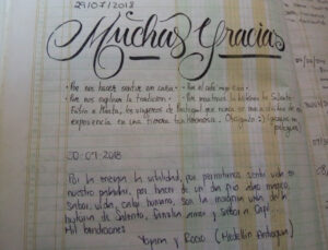 Los hermanos Araque también atesoran tres libros de contabilidad donde los visitantes consignan sus comentarios; en sus páginas guardan todo tipo de garabatos, dibujos y caligrafías en chino, coreano, ruso, francés e inglés, por nombrar algunos.