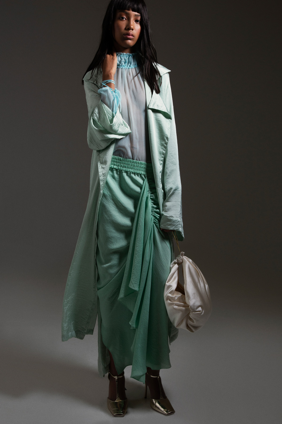 Ahora sí compré un dress form (risas) y tengo una técnica directa de crear con las telas en las manos, porque no hago bocetos. Todo se crea sobre el cuerpo. Lo hago así por recursivo, pues la seda es muy difícil de manejar, no se deja coger ni coser. Por eso mis siluetas son siempre fluidas.
