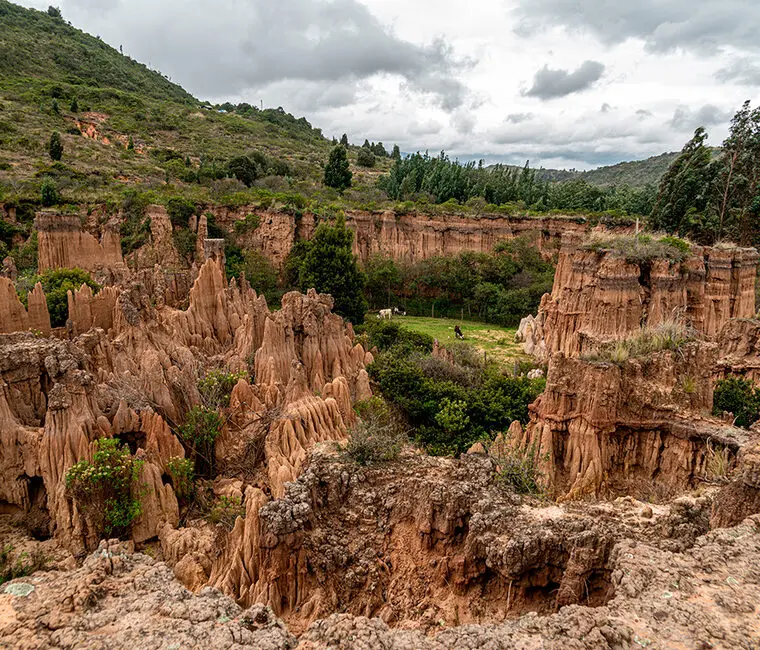 A menos de dos horas de Bogotá, donde la selva de concreto da lugar a la naturaleza, aparece este desierto oculto que pocos se imaginan tan cerca de la capital. En la vereda Checua, municipio de Nemocón, existe un ecosistema de arenas y cañones erosionados, formando un escenario que rompe con el paisaje verde del altiplano cundiboyacense. Allí el sol y el viento son esenciales para mantener este lugar, que según expertos en medio ambiente está condenado a desaparecer. Vea también: Siete desiertos a los que debe ir al menos una vez en la vida El lugar se conoce como Desierto de Checua o Desierto de la Tatacoita. Su nombre aparece en algunas guías de turismo alternativo y en boca de quienes ya han caminado entre sus formaciones rocosas. La mayoría de habitantes de la capital desconoce su existencia. El trayecto desde el centro de Bogotá hasta el lugar puede tomar cerca de dos horas, donde tiene que tomar la autopista Norte hasta Zipaquirá, después se continuar hasta Nemocón y desde allí acceder a la vereda en transporte particular o en moto taxis que conectan el pueblo con el acceso al desierto.