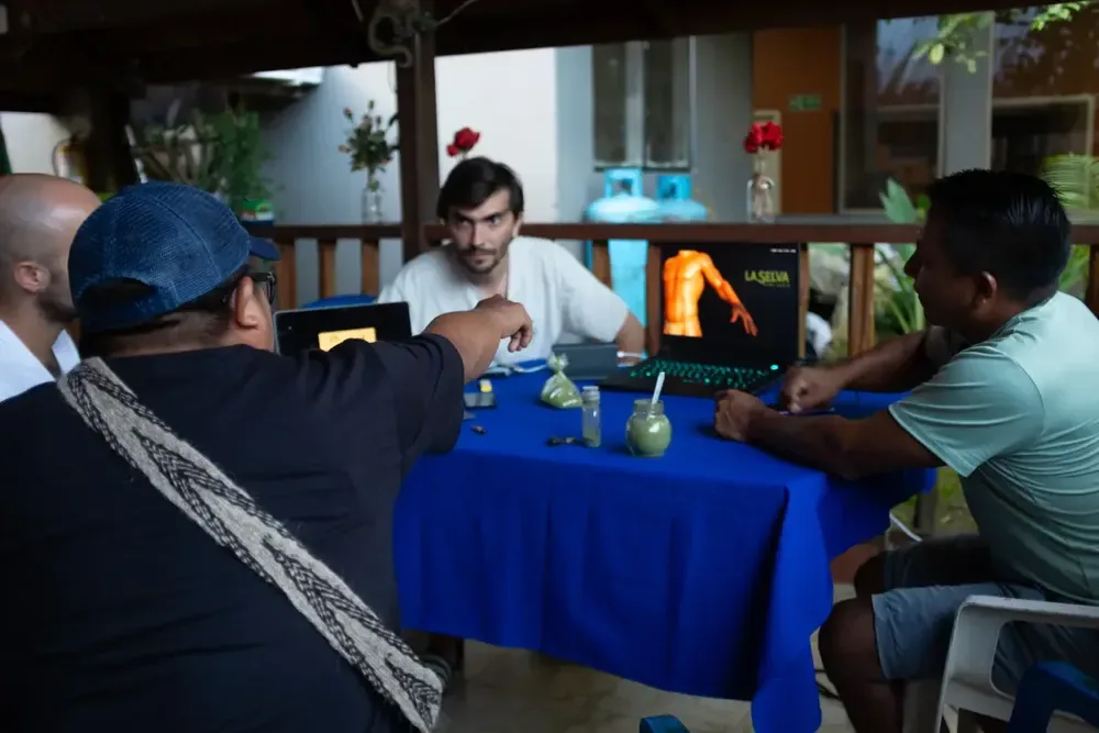 Daniel: Este proyecto surge de unir intereses. Santiago y Edward venían con experiencia en desarrollo de videojuegos y querían traer esas experiencias a Colombia, en particular a la Amazonía. Yo, desde la antropología, había trabajado con comunidades indígenas y vimos una oportunidad: muchas de sus historias no se conocen bien y los formatos tradicionales no logran llegar a públicos amplios. La idea fue usar los videojuegos como un nuevo medio para transmitir esas historias, tanto hacia afuera como hacia las mismas comunidades. Santiago: Vivimos en un país que repite las mismas narrativas una y otra vez, y no siempre son las que representan a todos. Queremos ser una de las voces que cuente historias distintas, de agentes que casi nunca aparecen en el centro, como los pueblos indígenas. ¿Por qué un videojuego y no otro medio como el cine o la literatura? Foto cortesía La Selva Game Studio. Santiago: Porque es un medio que crece más rápido que cualquier otro. Por ejemplo, los videojuegos generan más ingresos que el cine, la música y los deportes juntos, y no es casualidad: un gran porcentaje de personas menores de 35 años los acepta como forma válida de contar historias. Además, tienen una fuerza única, y es que uno habita el personaje, convive con su realidad y eso genera empatía. Daniel: También porque el componente visual y de encarnar al personaje crea una relación íntima con la historia. Y algo importante: queremos que las culturas indígenas se vean no solo como objetos de interés académico o romántico, sino como protagonistas de relatos emocionantes, que sorprendan y asombren igual que una película de acción. ¿Cómo se da esa relación con las comunidades indígenas?