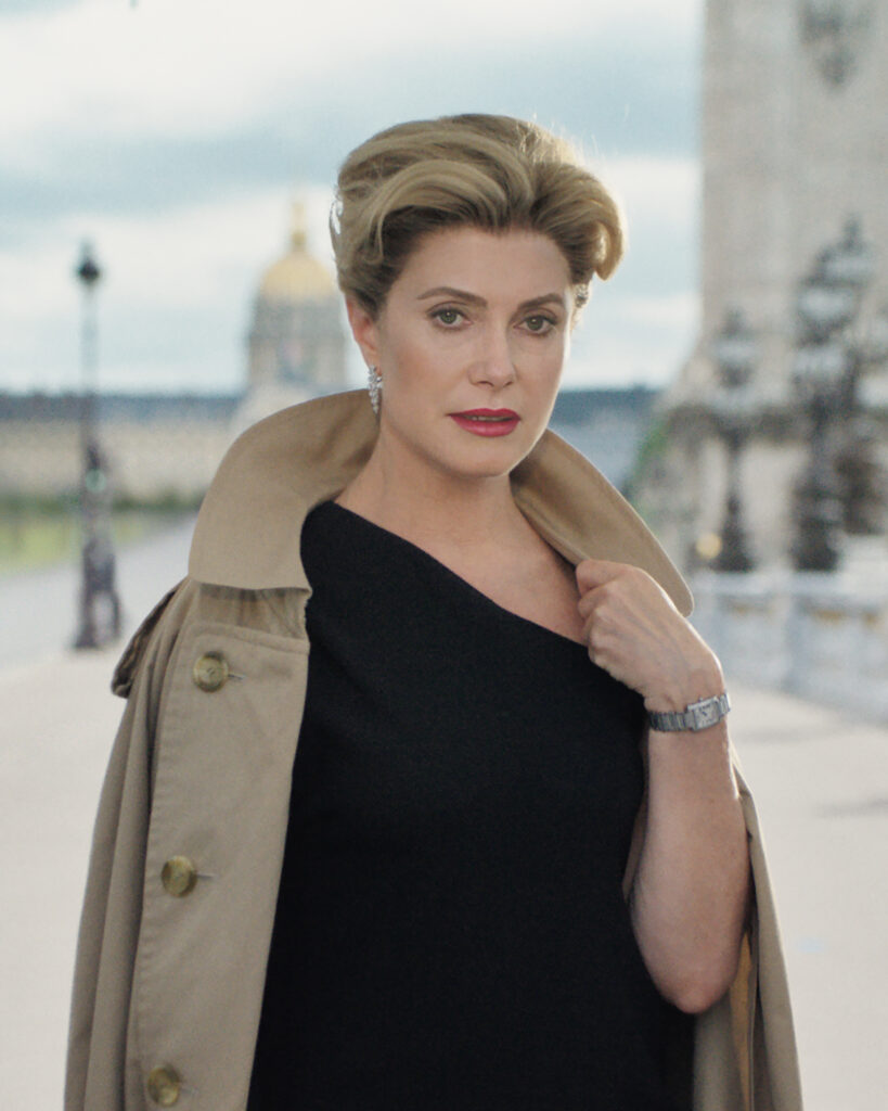 Ahora vuelve a ver ese mismo rostro, pero su cámara viajó en el tiempo y ella está aun más joven. Da unos pasos más, y nuevamente está ahí, ella, y él empieza a hacerle un retrato con un carboncillo. Hay un destello. Y ahora él es un director de cine. Al frente suyo se encuentra Catherine Deneuve, que con su hermosa mirada recuerda las escenas que grabó para Los paraguas de Cherburgo de Jacques Demy, Indochina de Régis Wargnier y Place Vendôme de Nicole García.