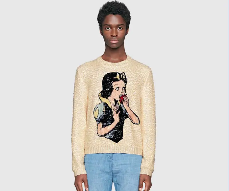 Para la temporada primavera/verano 2018 los protagonistas fueron dos personajes muy reconocidos de dos grandes compañías productoras: el chaleco con la imagen de Bugs Bunny y el suéter de Blancanieves.