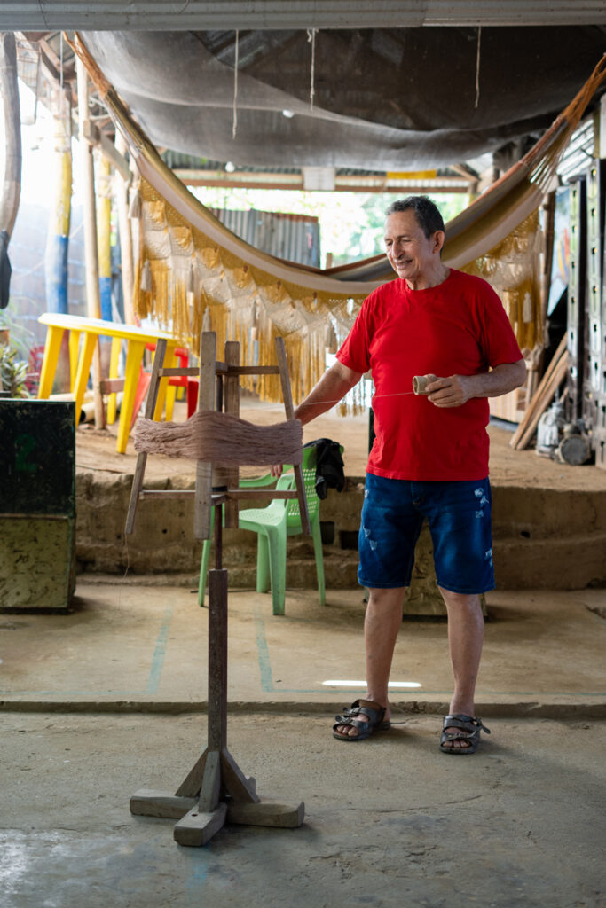Sin embargo, pintar no siempre alcanza para vivir, así que también se dedica a hacer hamacas con técnicas que pocos conservan, utilizando tintes naturales extraídos de elementos como la corteza del árbol mora o la planta medicinal singamochila, capaz de generar hasta ocho colores.