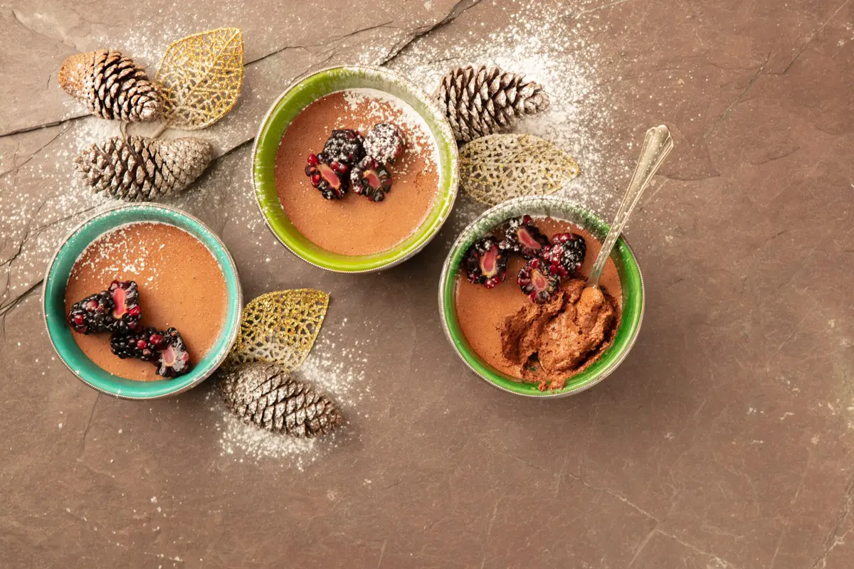 Esta versión sin lácteos de un clásico mousse de chocolate es perfecta para las personas intolerantes a la lactosa. Asegúrese de utilizar un aceite de oliva de buena calidad y suave para lograr los mejores resultados, pues si es muy picante sobrepasará el sabor del chocolate.