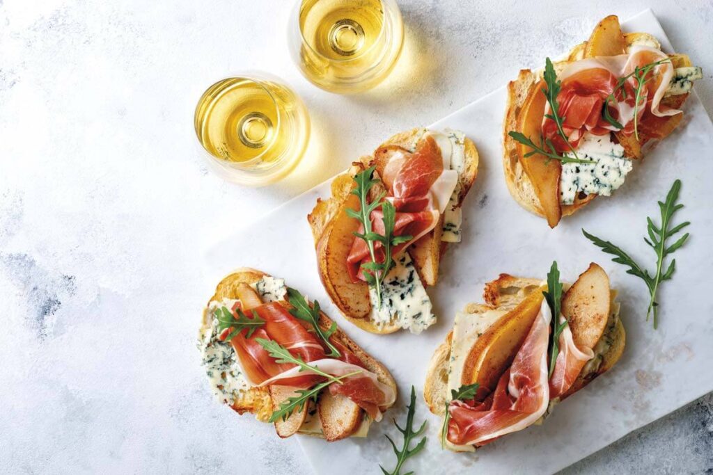 Para comenzar disfrute croquetas de chorizo español o tostadas de rabo de toro, un guiso típico de Córdoba, que podrá maridar con vino.