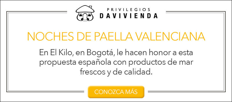 En El Kilo, en Bogotá, le hacen honor a esta propuesta española con productos de mar frescos y de calidad. Su preparación incluye camarones, mejillones, chorizo y pollo.