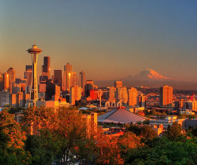 Construida en 1962 para la Feria Mundial, la torre de observación Space Needle es desde entonces un ícono de la región, desde sus 184 metros se puede observar casi en su totalidad la ciudad extendida sobre las colinas de Capitol Hill, Queen Anne, Magnolia, Beacon Hill, entre otras. El diseño final de la torre, fue producto del trabajo de dos personas, pero el responsable de la forma que emula a un platillo volador fue el arquitecto John Graham. La estructura del Space Needle, está hecha para soportar terremotos de hasta 9.1 en la escala de Richter y huracanes categoría 5. La torre está abierta al público de domingo a domingo los 365 días del año, los tiquetes para adultos cuestan 22 dólares, para evitar hacer fila, se recomienda comprar los tiquetes con anterioridad en su sitio en la red: Space Needle