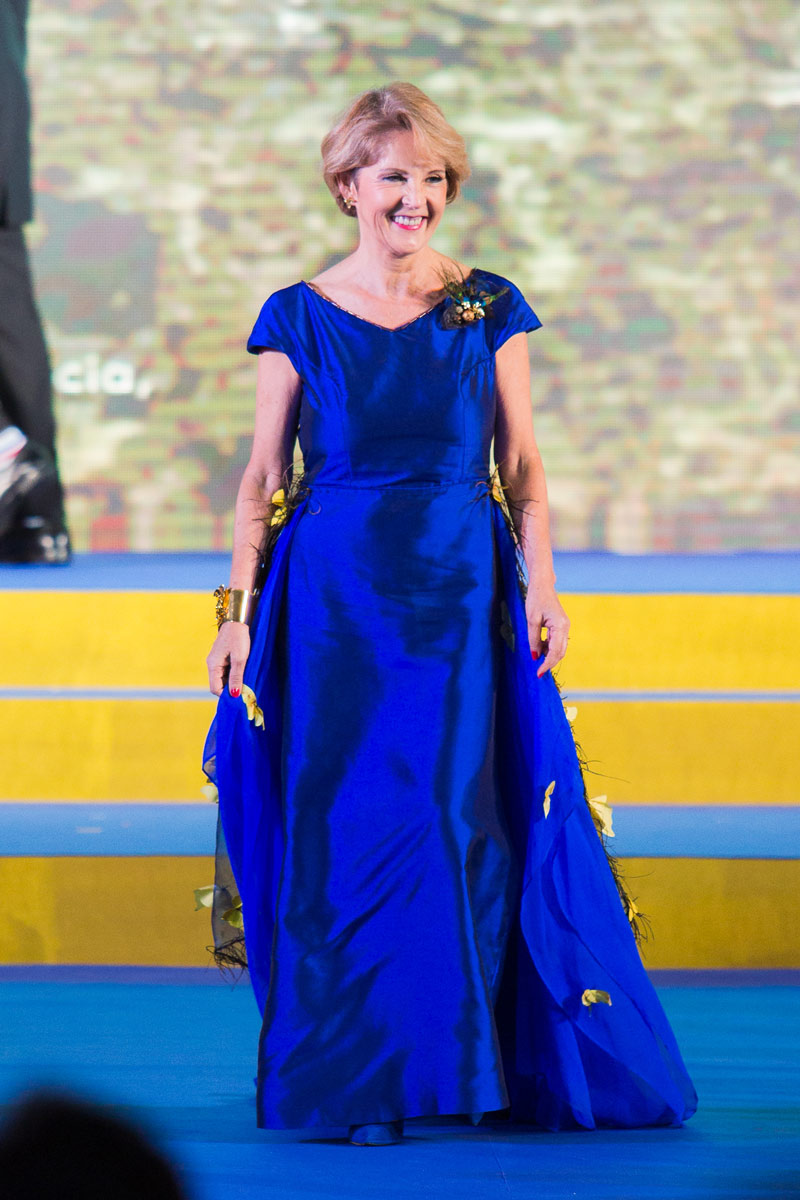 Astrid Amaya con el vestido confeccionado y pintada por Camilia Miranda en el Festival de la Seda de Tailandia. Foto cortesía: Camila Miranda