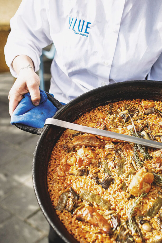 Hace calor. Vamos a un antiguo hotel, nos cambiamos rápidamente y salimos al restaurante Cremaet. El almuerzo, por supuesto, será algo predecible para el lugar: paella valenciana. No tenía la menor idea de que la auténtica era con arroz bomba, pollo, conejo y caracoles. ¡Todo lo demás se denomina arroz y punto! (arroz del senyoret, arroz al horno, arroz negro y un largo etcétera). No se discute eso con un valenciano. La paella está deliciosa, crocante y con un sabor especial que le dan el garrofón (una especie de fríjol blanco) y la bajoqueta (una clase de habichuela plana), más el tomate y el azafrán.