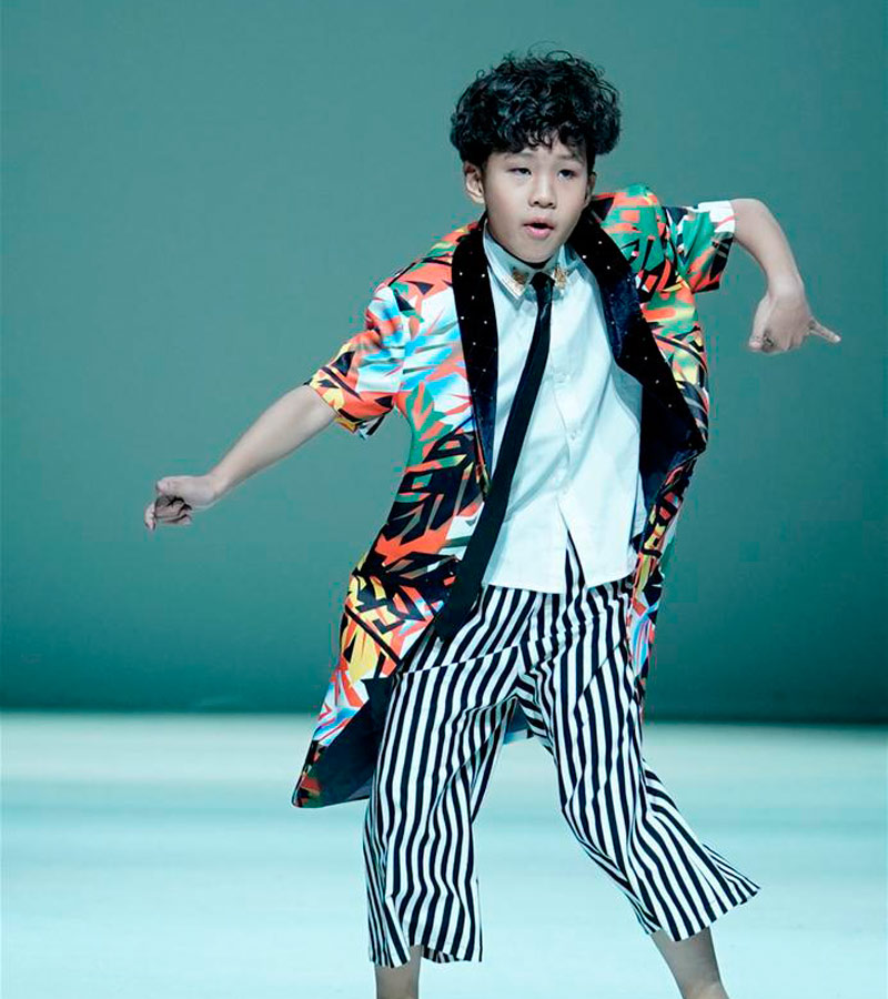 El diseñador Chongwei sorprendió al público con una colección para hombres, mujeres y niños. Los cortes asimétricos y contrastes de colores calientes y fríos hacen de los vestidos de dos piezas, tanto para hombres y mujeres, una opción para una fiesta.