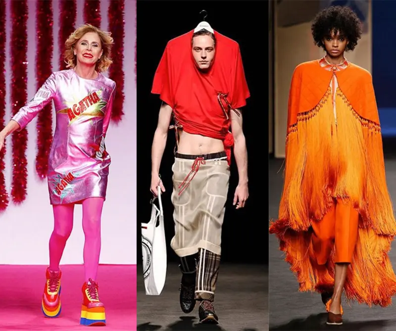 El estilismo del desfile consistió en tapar la boca de las modelos con corazones en cartón rojo, los colores neón en sus trajes y particulares zapatillas con plataforma que hicieron del desfile uno único, como la misma marca.