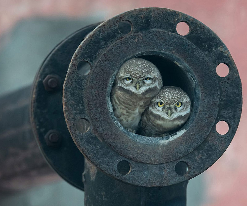 – Arshdeep Singh, de tan solo 10 años, fotografía en su natal India esta pareja de lechuzas refugiadas en un tubo abandonado. Los jueces resaltaron que es muy extraño ver a estas aves de día y mucho menos dentro de un tubo, consecuencia directa de la deforestación generalizada.