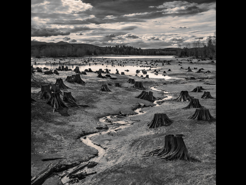 Paisaje: Stumps, Alder Lake, Nisqually River del estadounidense Hal Gage.