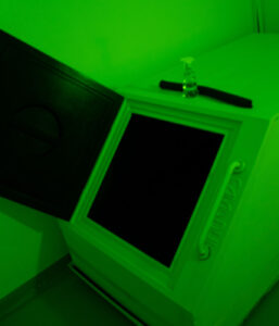 Estos tanques tienen una puerta en la parte delantera, por donde ingresará a flotar sobre 25 cm de agua ozonizada con sales de epsom. Y, una vez dentro de este, será solo usted con usted.