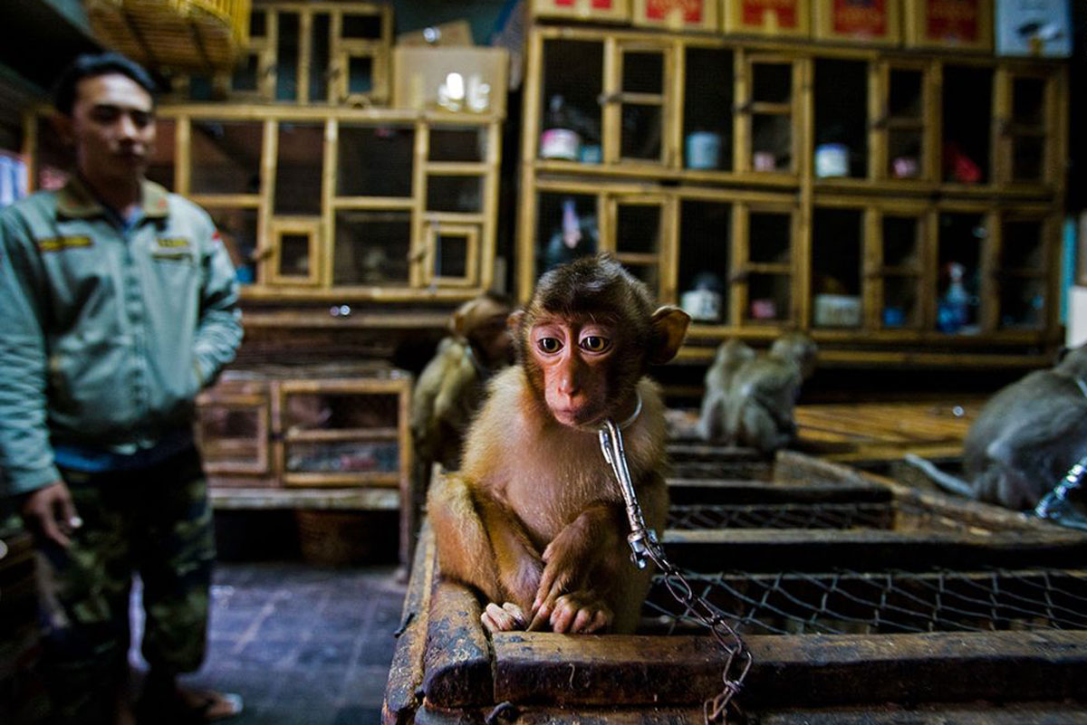 El fotógrafo Paul Hilton también ganó por su trabajo sobre la explotación de la vida silvestre. Su proyecto sobre el comercio y el tráfico mundial de especies silvestres, incluyó una foto de un macaco encadenado en la trastienda de un mercado de aves de Bali.